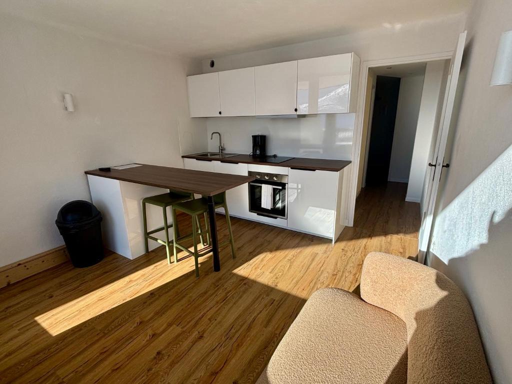 dispun de chicinetă cu chiuvetă, aragaz cu 2/4 plite, frigider; unele dispun de cuptor cu microunde și, în general, sunt dotate cu mașină de spălat vase - Skipass valabil 6 zile în Val Thorens